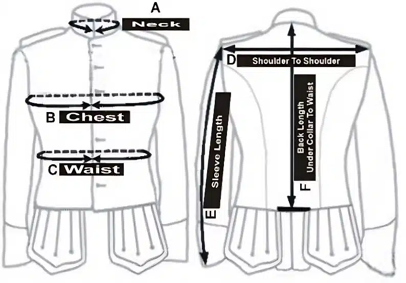 COMPLETE MEAUREMENT GUIDE FOR PRINCE CHARLIE JACKET.